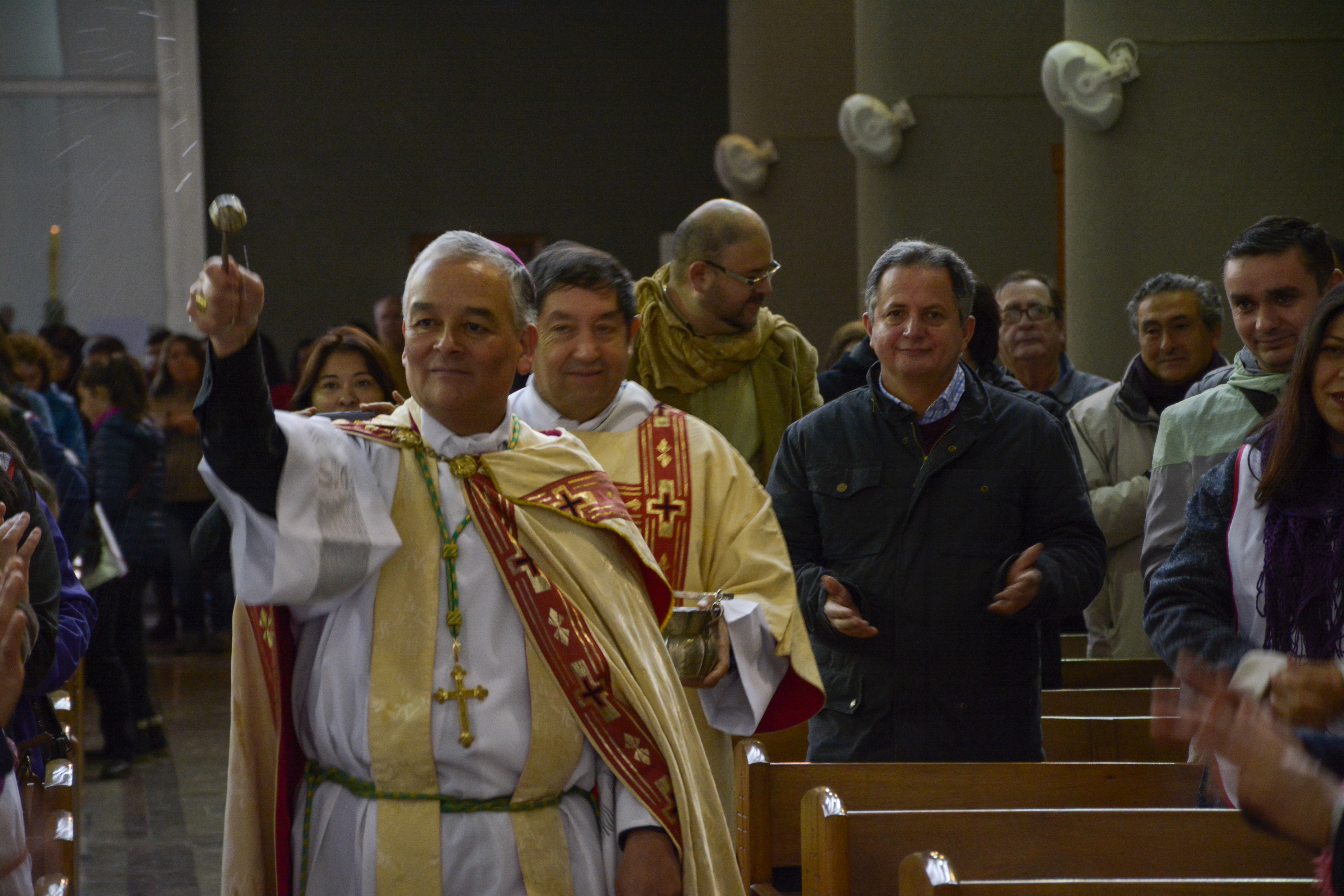 Chillan, Chile. May 1, 2017. The bishop blesses the Catholics attending the Blessed Sacrament with holy water….