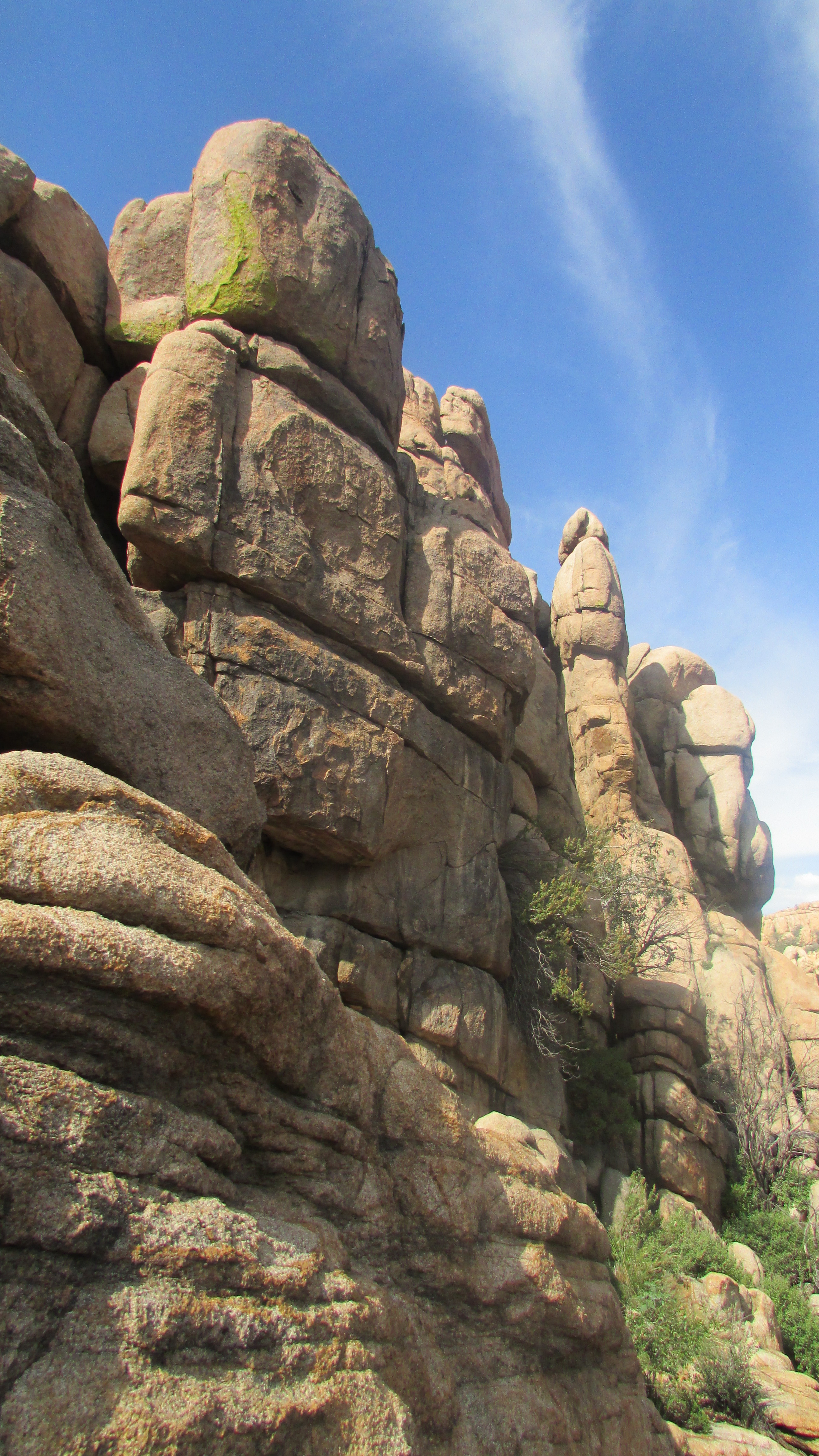 Rocks were definitely the predominate feature on a trip we took recently through southern Arizona and New Mexico. We began our journey at Kartchner Caverns, southeast of Tucson, Arizona. We had been to the caverns before, on tours of the Throne Room which features the world’s longest soda straw and Kubla Khan, a fifty-eight foot column. This time we were able to tour the Big Room which had only been open for a week. The Big Room is closed from mid-April to mid-October because it serves as a maternity ward for over a thousand female bats. It was a spectacular tour that included columns and ribbons called bacon as well as rare formations called moonmilk. What makes Kartchner Caverns distinctive from other caverns is that it is alive. Every effort is taken to maintain the proper humidity and conditions in the cavern. Watching water drip from the soda straws onto forming stalagmites, is like watching history in the making.