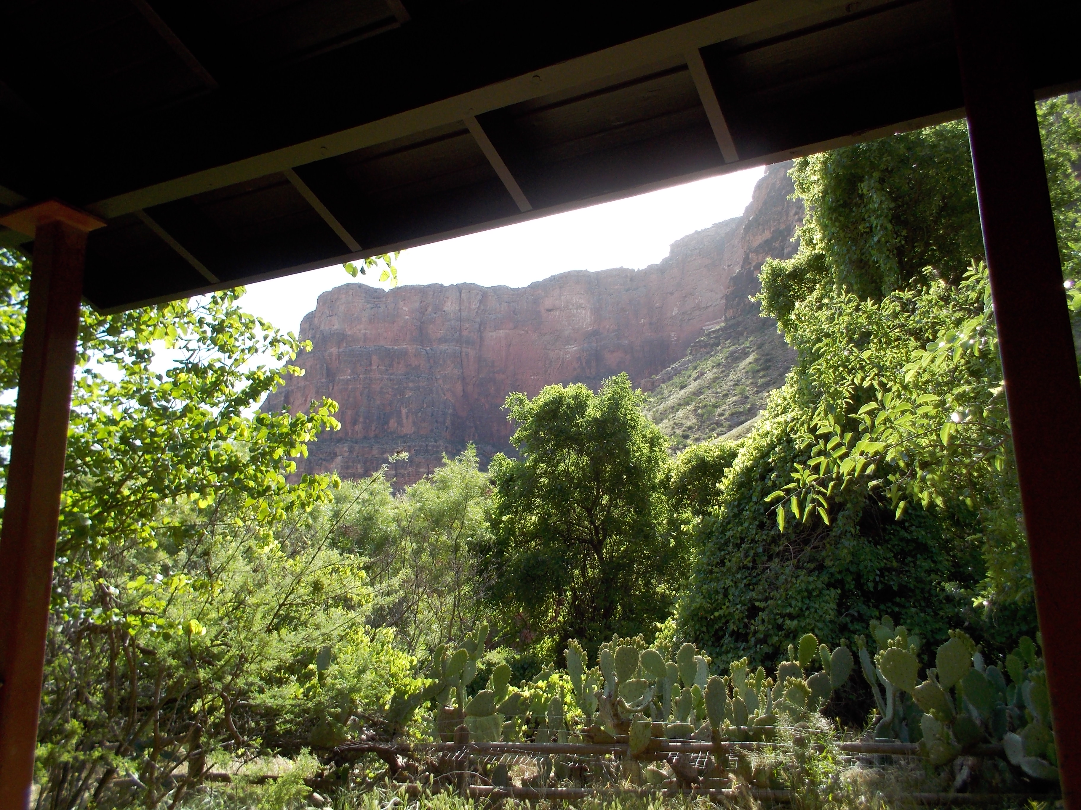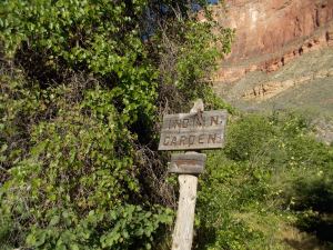 Indian Gardens is a lush oasis halfway down the canyon. It is surrounded by steep vermilion walls. A small creek flows through the campgrounds leaving the trail muddy in spots.